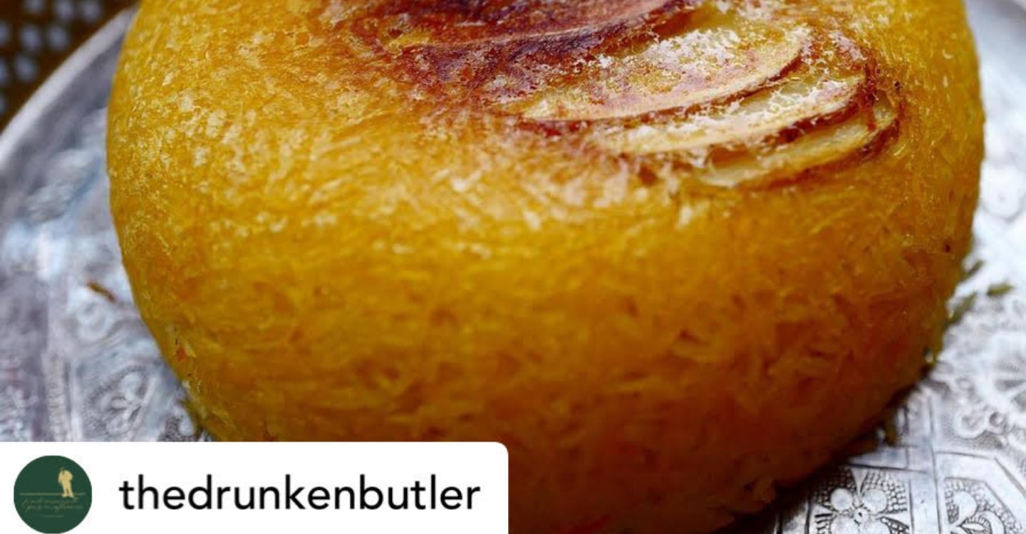 The article’s writer, Hester van Hensbergen, shares the early food memories of The Drunken Butler’s Yuma Hashemi, citing tahdig as a regular feature on the table of Persian Sunday — the restaurant’s changing weekly tasting menu.